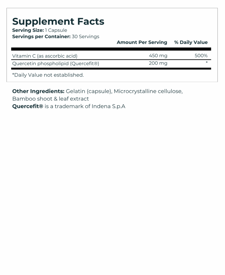This synergistic formula combines the antioxidant support of Vitamin C with quercetin which has been shown to be one of the most useful and physiologically active flavonoids.*
